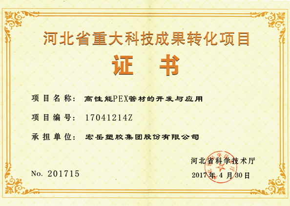 开云(中国)被认定为河北省高新技术企业,开云(中国)牌塑料管材管件被认定为国家免检产品。