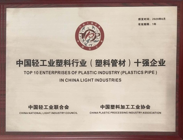 开云(中国)获得河北省塑胶管道技术创新中心(筹)、供暖行业推荐品牌、中国轻工业塑料行业(塑料管材)十强企业