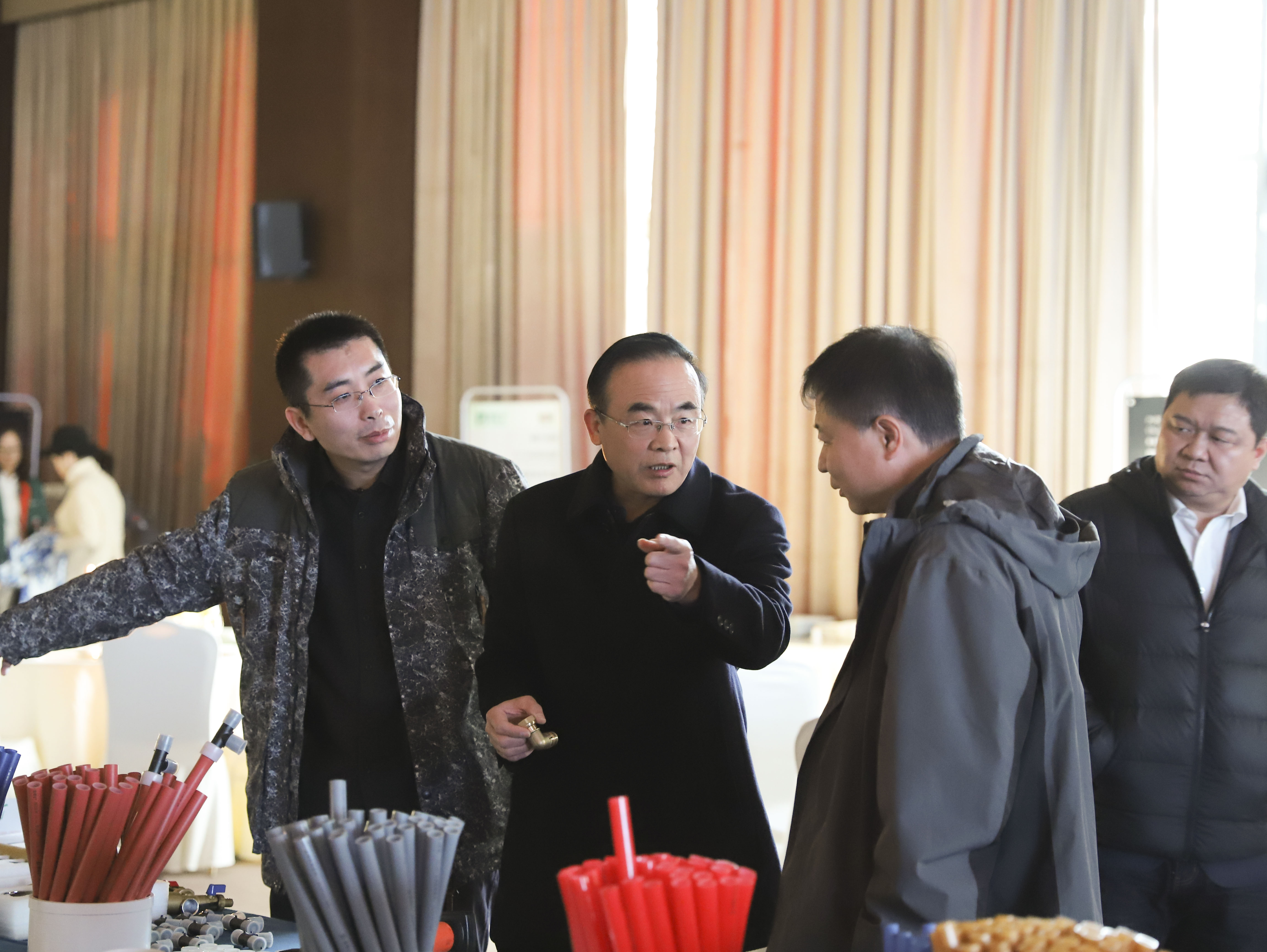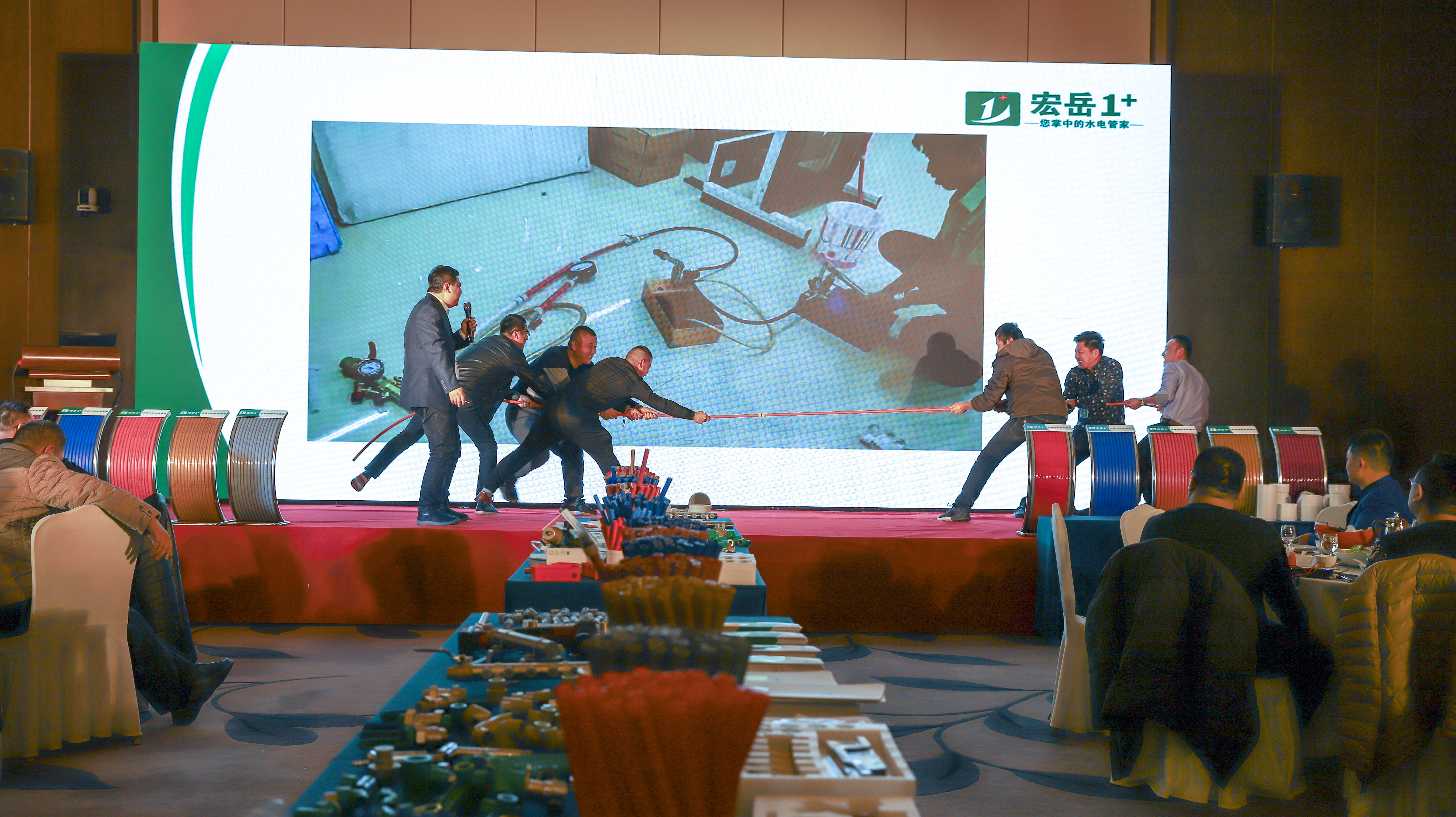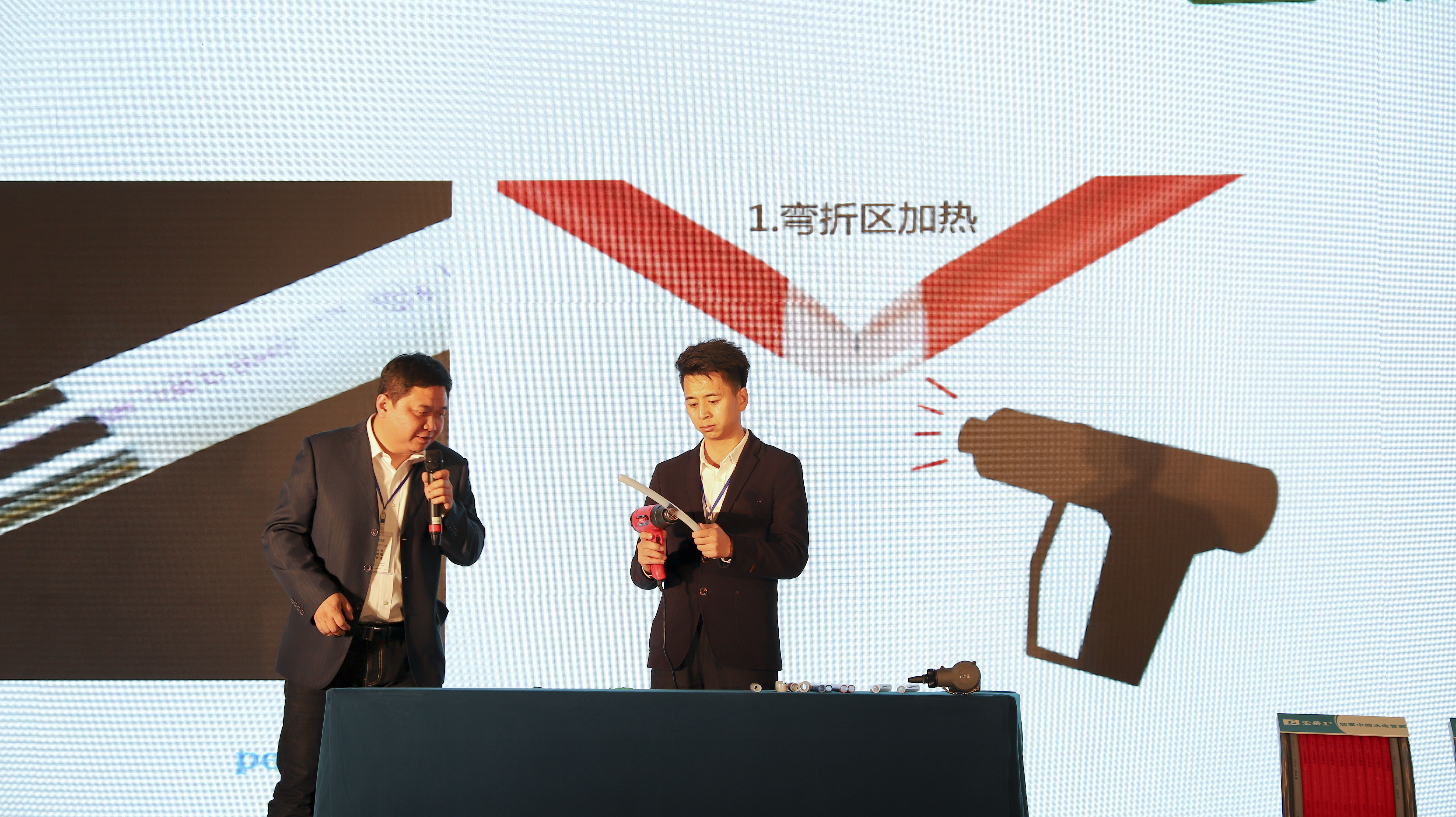 重点提出开云(中国)1+PE-Xa给水系统较目前市场主流给水系统降低70%的风险点,耐压高67%,耐温高32%,会上通过现场实验,展现了PE-Xa给水管超强的记忆功能,应对变形折伤加热即可无损复原。