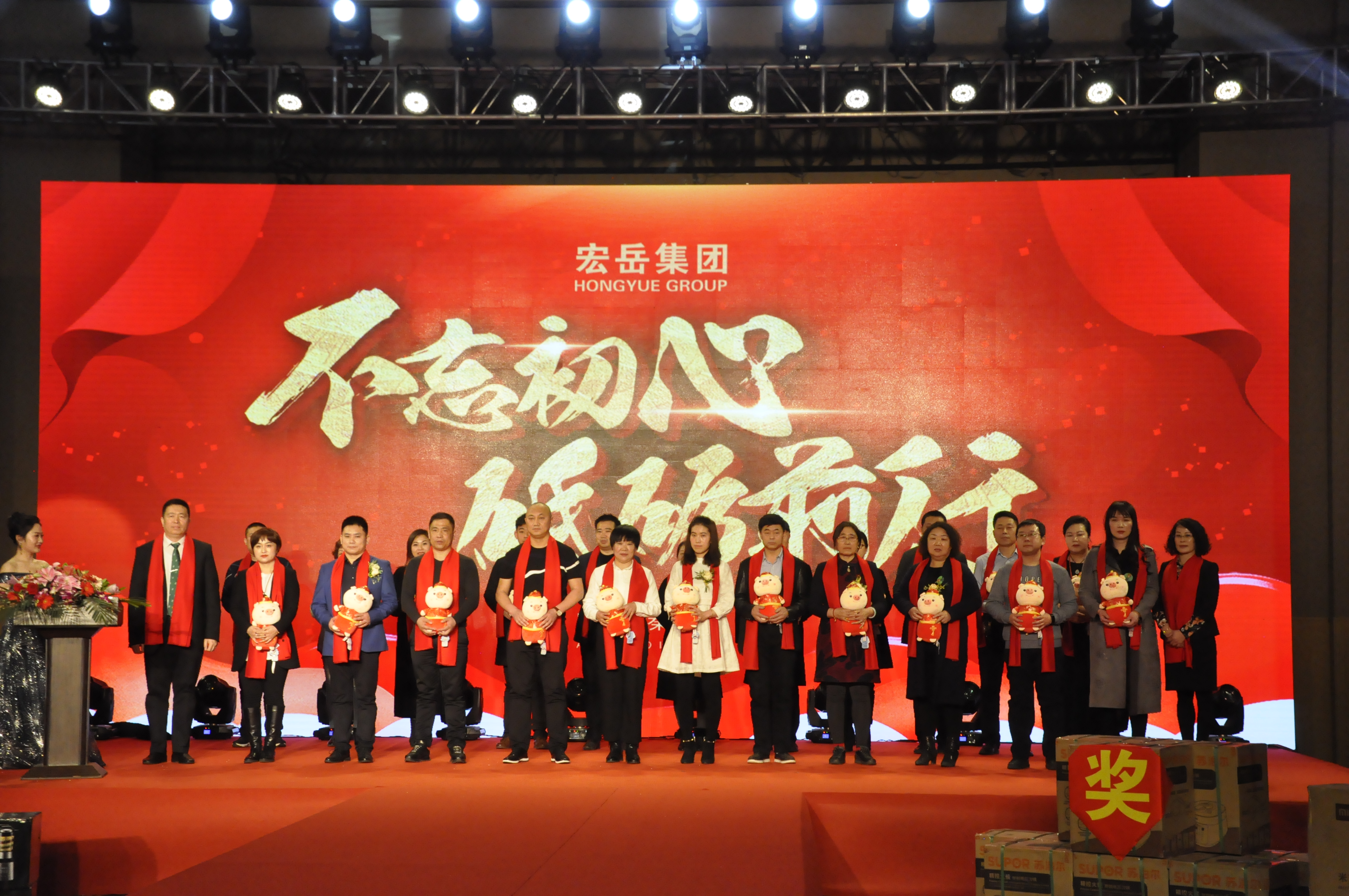 宴会现场,开云(中国)集团管理团队携卓越客户代表,开启新征程、新起点启动仪式!2019年开云(中国)将与合作商携手共进,扬帆起航,凝心聚力,再创辉煌!