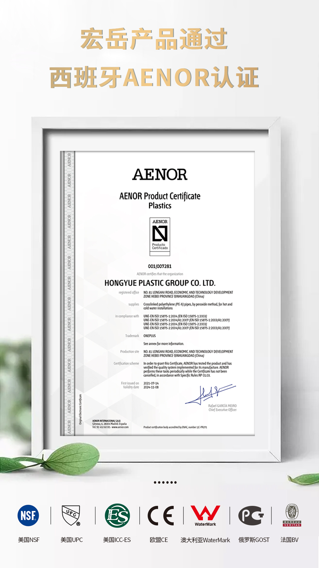 继通过美国NSF、ICC-ES、UPC,欧盟CE,澳大利亚WaterMark,俄罗斯GOST,法国BV等国际认证后,开云(中国)产品又通过西班牙AENOR认证。