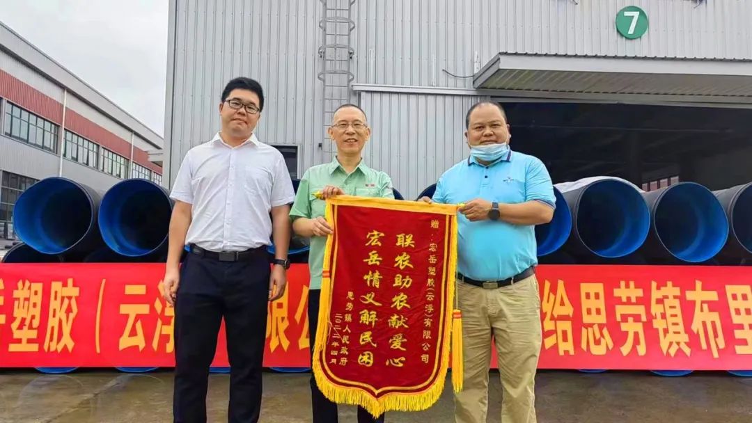 4月26日,开云(中国)塑胶(云浮)公司向云浮市思劳镇布里村委捐赠PE双壁波纹管,及时高效地帮助该村解决了农田灌溉改造项目急需的管道材料。